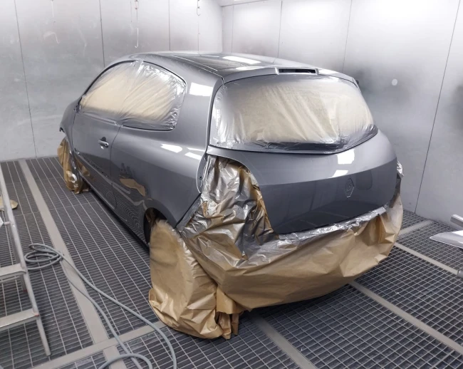 Cabine de peinture professionnelle pour une finition impeccable et des teintes sur mesure.